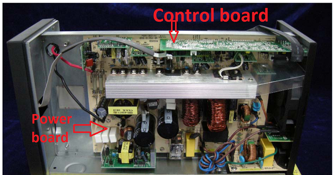1. Bo mạch UPS. Bao gồm các linh kiện điện tử, có nhiệm vụ đo kiểm, biến đổi điện năng, nạp điện cho acquy.