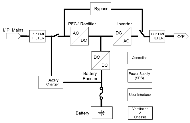 Sơ đồ khối của UPS như sau :