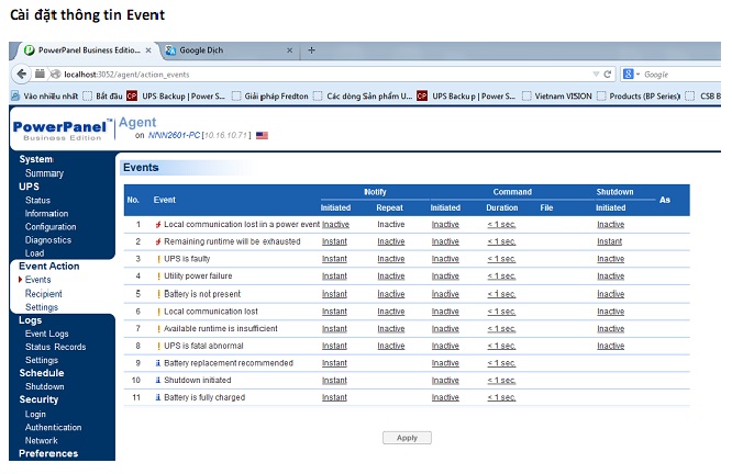 Hy vong với thông tin này sẽ giúp các bạn cài đặt và sử dụng phần mềm  Power Panel Bussness Edition của UPS Cyber Power