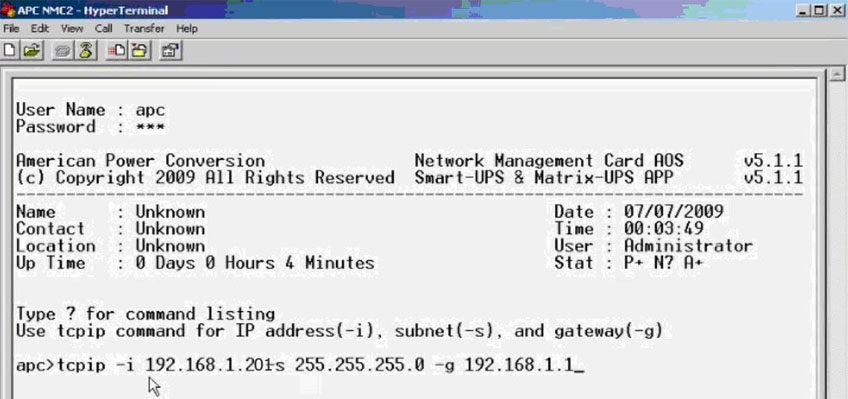 Đặt địa chỉ TCP/IP cho card quản trị, gồm các thông số IP address, Subnet Mask, Defaul gateway thông qua lệnh tcpip
