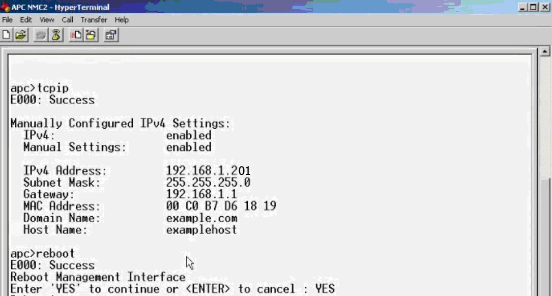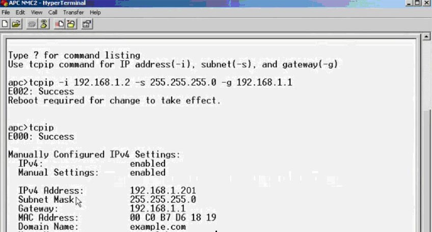Gõ lệnh: tcpip để xem lại cấu hình đã thiết lập